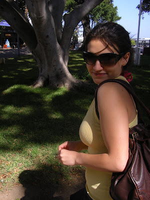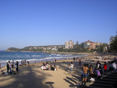 I'm getting sidetracked. On Sunday Ola and I went over to Manly Beach for the afternoon, to soak up some rays and splash in the surf. The day wasn't anywhere as warm as it should have been (considering Thursday and Friday of last week were 27-28 C), but we still managed to lie out in our bathing suits and coax ourselves into the water. Being Canadian, however, we were able to handle the cold water quite well... and I think it was my first time swimming in the ocean that I can remember. (Hawaii and Florida when I was 3 and 5 respectively don't count.) Pictures!